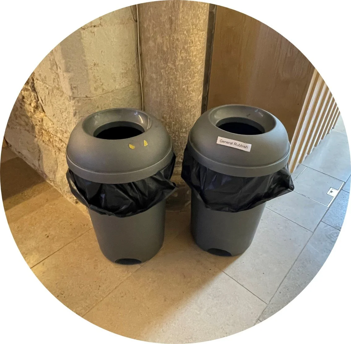 Waste is generated by staff, volunteers and visitors through the activities on the Cathedral floor, offices, and Crypt Cafe. In a typical week, over 50 sacks of general waste are disposed of at the Cathedral, enough to fill two 1100L containers. A further two 1100L containers of mixed recycling are collected, with separate recycling collections for glass and paper waste from the office. A skip is filled as required for larger items such as furnishings or building materials, when this cannot be donated or sold.