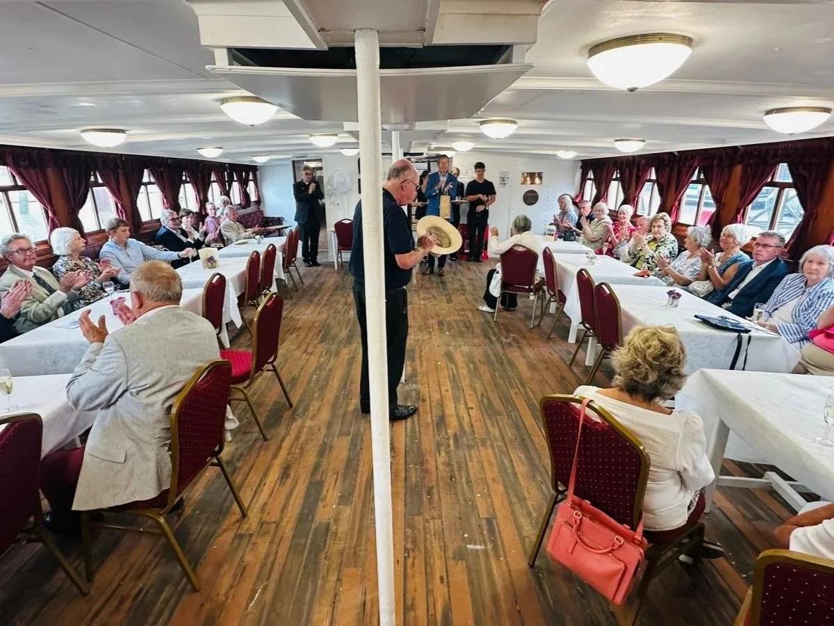 Guests learned about the ship’s remarkable journey—from active service, to a nightclub on the Isle of Wight, to dereliction, and finally to her return to the Medway. Since 1985, the Medway Queen Preservation Society has worked tirelessly to restore her, supported by a significant Heritage Lottery grant.