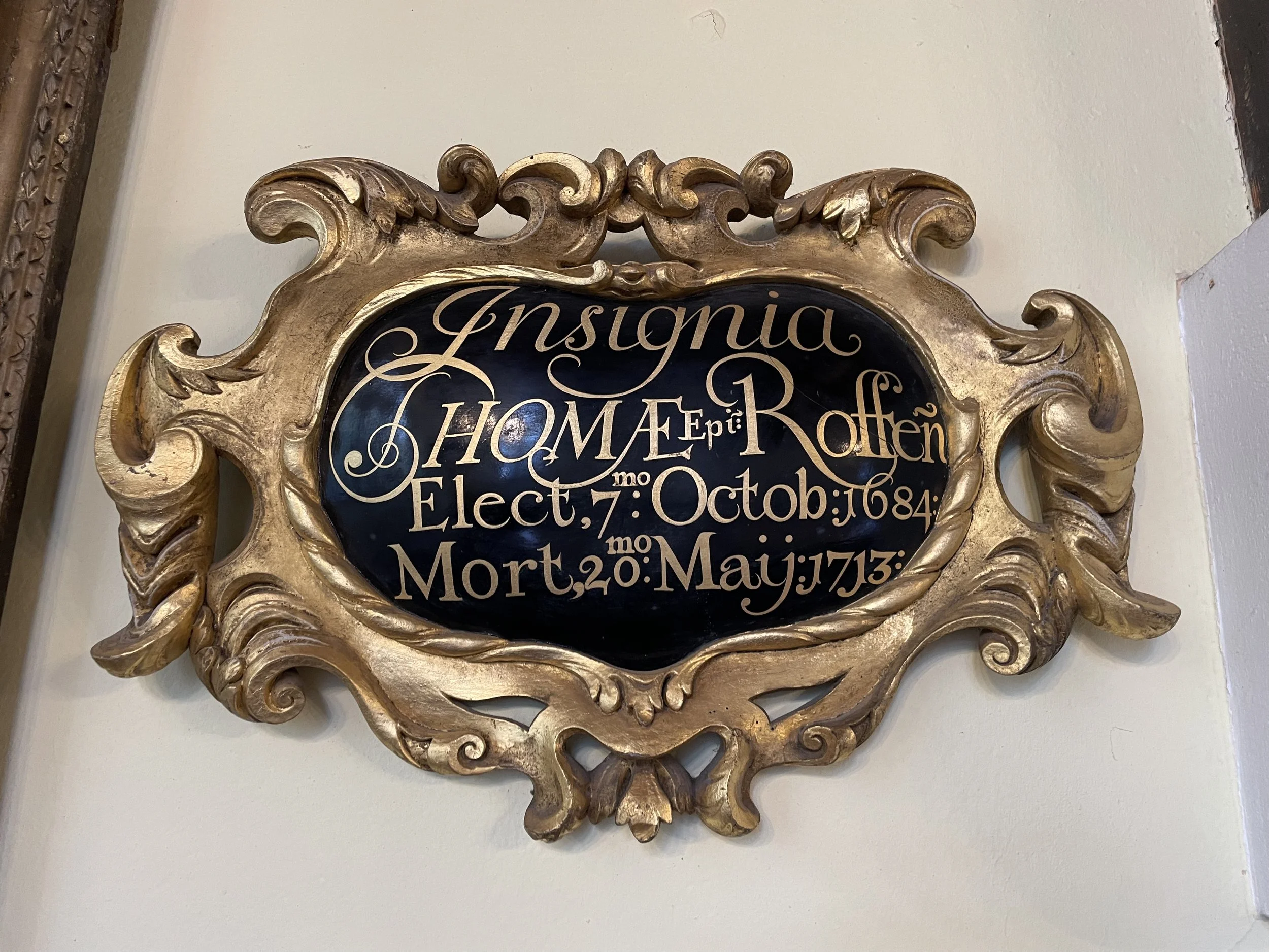 A portrait of Bishop Thomas Spratt and insignia in the Cathedral collections.